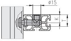 Parallel-universele verbinding voor de verbinding tussen een 20/30 en F profiel.Het profiel is hierbij 20 stramien hoog en 30 stramien breedt.