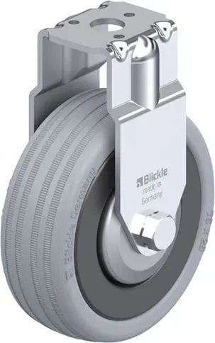 Apparatenbokwiel, met boutgat, wiel, met massief rubberen band, met kunststof velg, met naafbescherming van staal
