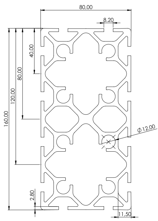 Profiel 80x160, 12E, SP - Zwaar profiel