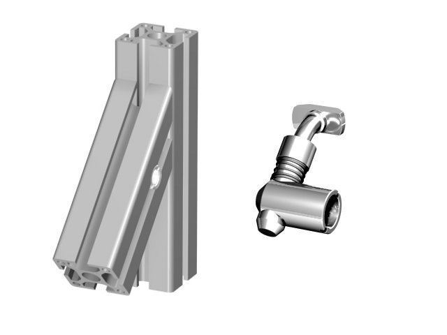 Schuin-gebogen standaard verbinding voor de verbinding tussen een 30 en E profiel.Voor een hoek tussen de 0º en 45º.