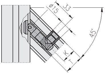 Schuin verbinding voor de verbinding tussen een 40 en F profiel.Voor een hoek tussen de 0º en 45º.
