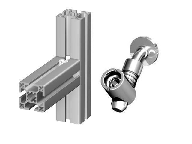 Schuin-gebogen universele verbinding voor de verbinding tussen een 60 en E profiel.