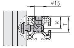 Parallel-universele verbinding voor de verbinding tussen een 60 en F profiel.