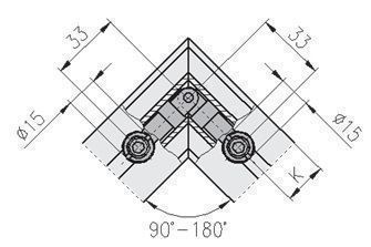 Hoek verbinding voor de verbinding tussen een 60 en 60 profiel.