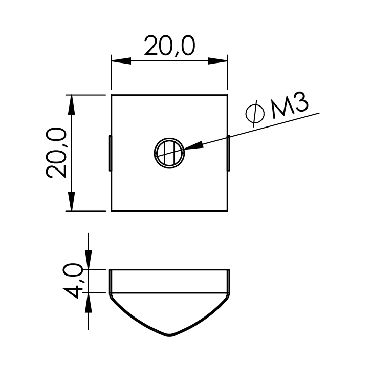 Inschuifmoer voor een E groef, voor een moer-type verbinding.