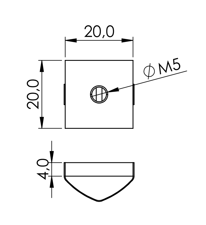 Inschruifmoer voor een E groef, voor een moer-type verbinding.