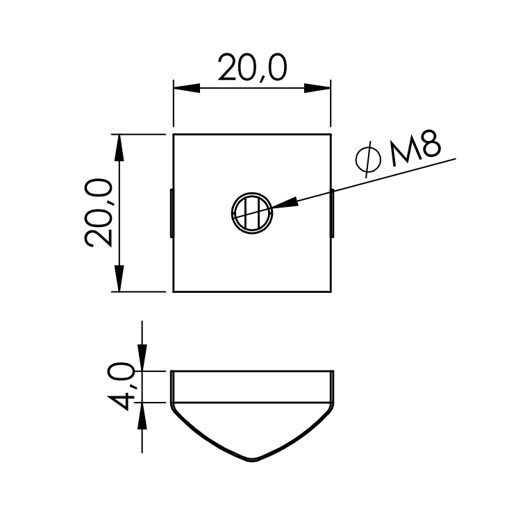 Inschruifmoer voor een E groef, voor een moer-type verbinding.