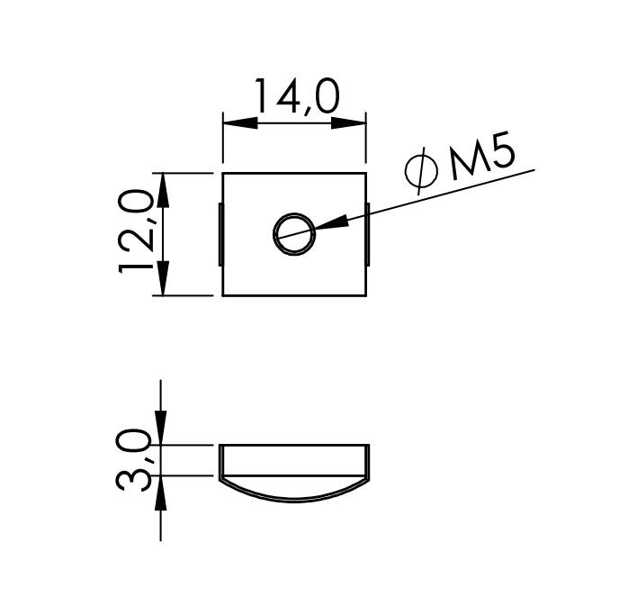 Inschruifmoer voor een F groef, voor een moer-type verbinding.