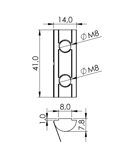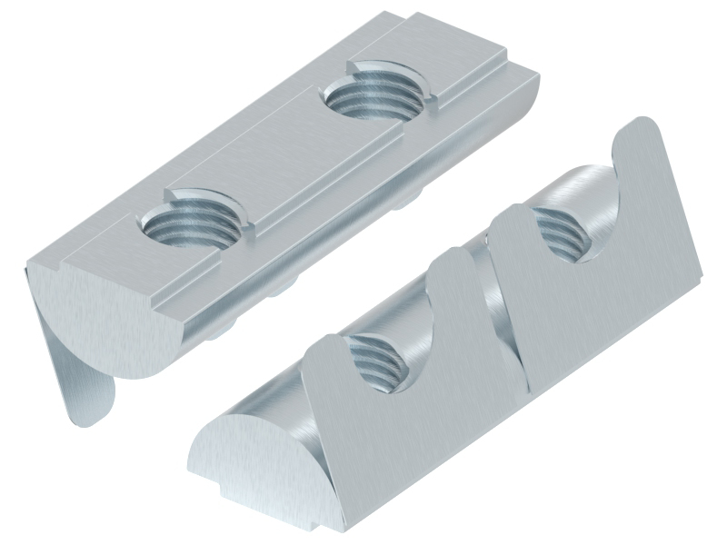 Inkantelbare schuifmoer voor een E groef, voor een moer-type verbinding.