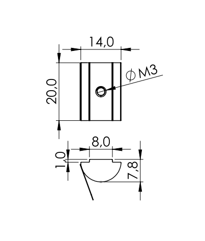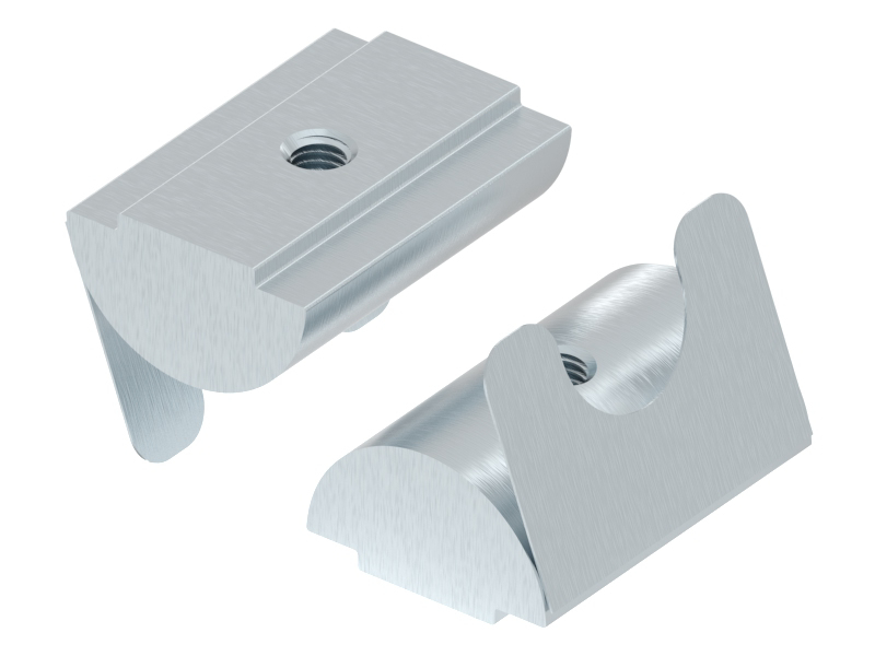 Inkantelbare schuifmoer voor een E groef, voor een moer-type verbinding.
