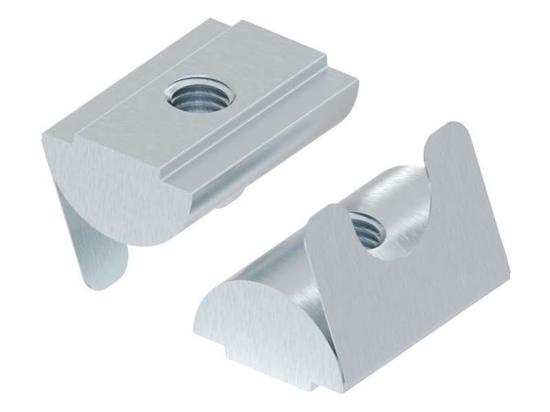 Inkantelbare schuifmoer voor een E groef, voor een moer-type verbinding.