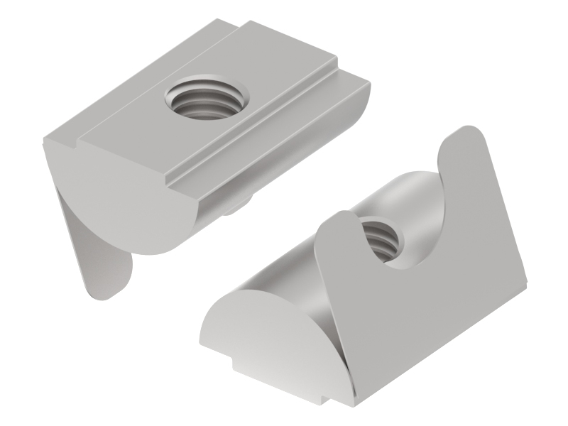 Inkantelbare schuifmoer voor een E groef, voor een moer-type verbinding.