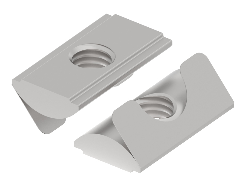 Inkantelbare schuifmoer voor een F groef, voor een moer-type verbinding.