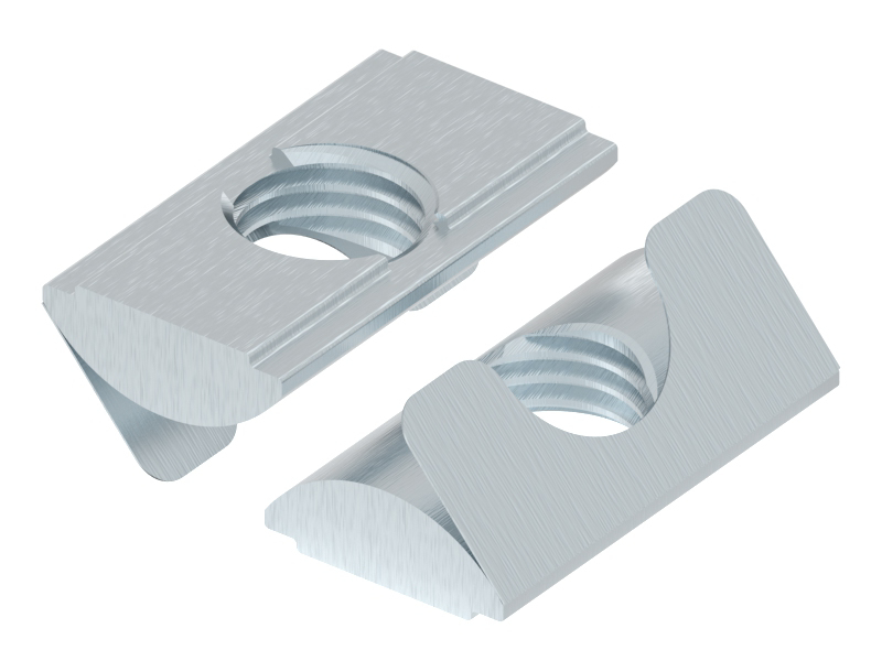 Inkantelbare schuifmoer voor een F groef, voor een moer-type verbinding.