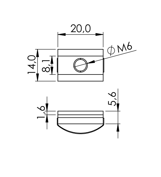 Inschruifmoer met veer voor een F groef, voor een moer-type verbinding.