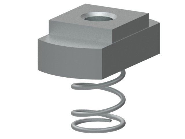 T-moer met veer voor een E groef, voor een moer-type verbinding.