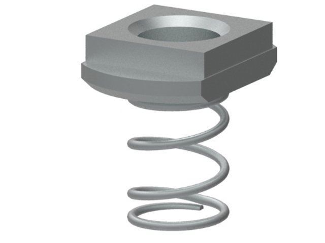 T-moer met veer voor een F groef, voor een moer-type verbinding.