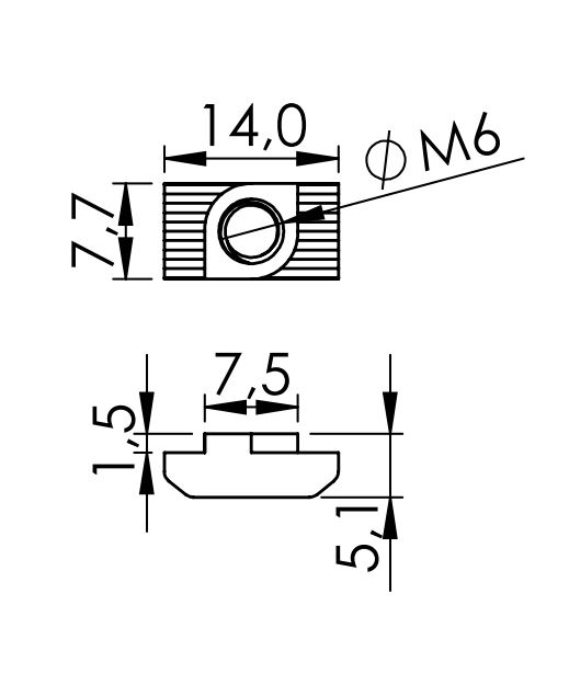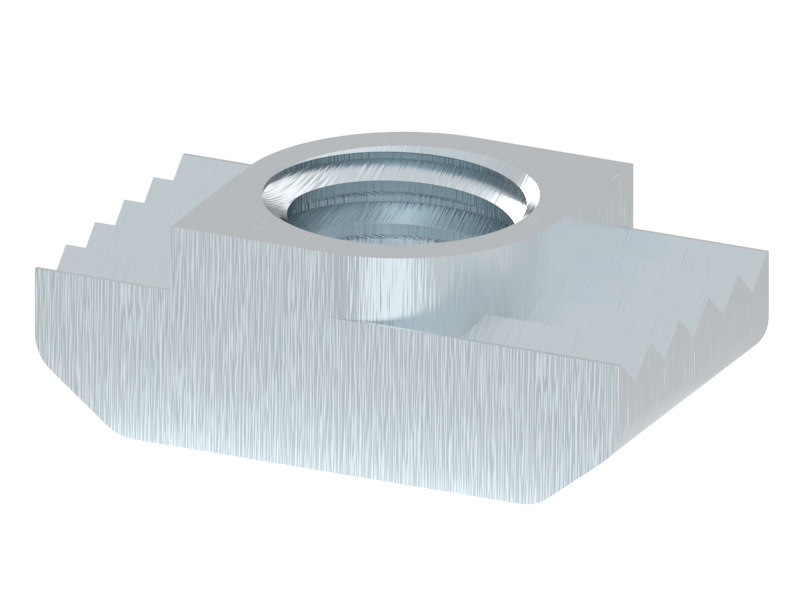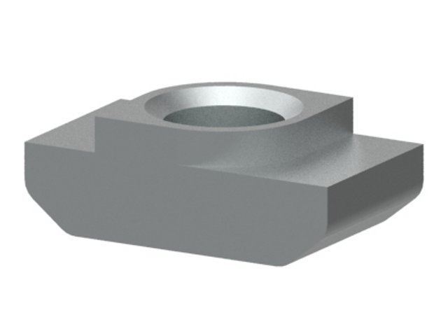 T-moer voor een F groef, voor een moer-type verbinding.T-moer voor een F groef, voor een moer-type verbinding.