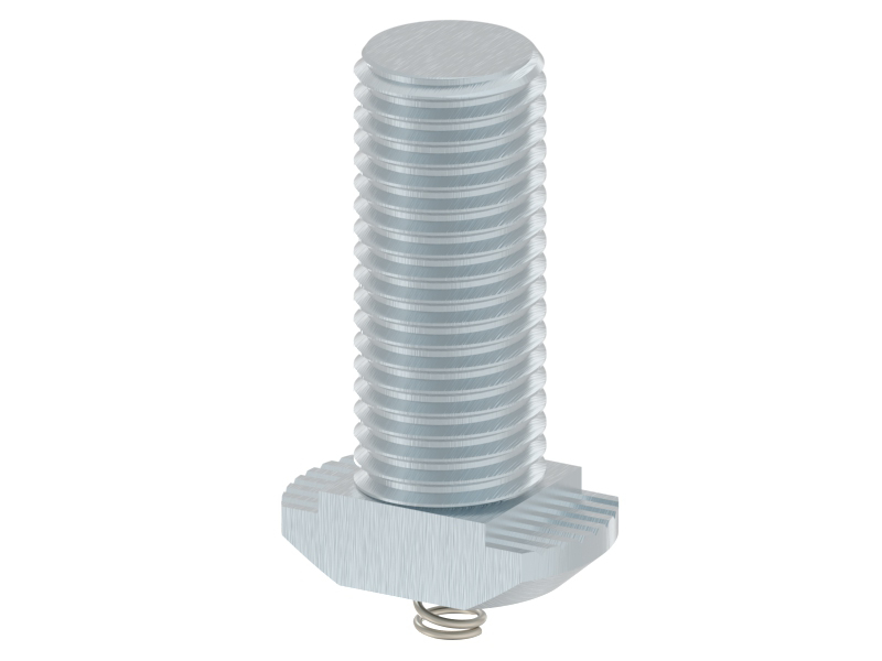 T-bout voor een F groef, voor een moer-type verbinding.