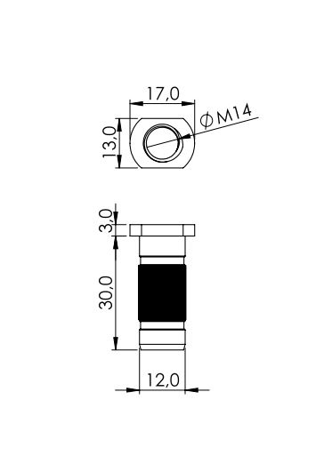 Inslagmoer voor bevestiging aan einde van het profiel, voor een moer-type verbinding.