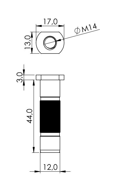 Inslagmoer voor bevestiging aan einde van het profiel, voor een moer-type verbinding.