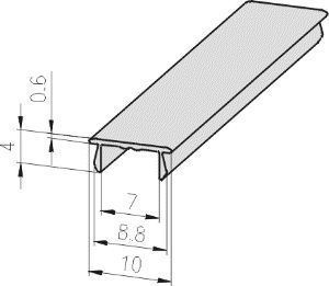 Afdekprofiel voor een F of E groef, voor de bescherming van de groeven.Met 0.6 mm uitsteek aan de bovenkant.