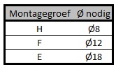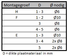 Voor het gebruiken van de strip als opvulling naast een paneel of draad paneel kunt u deze tabel raadplegen voor de ideale diameter.