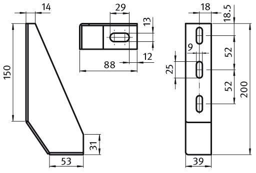 Basis voet voor het vastmaken van profielen of frames aan de grond of muur.