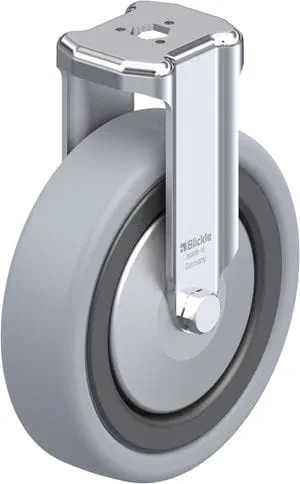 Apparatenbokwiel, met boutgat, wiel, met massief rubberen band, met kunststof velg, met naafbescherming van staal