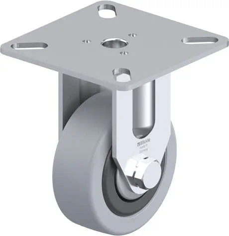 Apparatenbokwiel, met bevestigingsplaat, wiel, met massief rubberen band, met kunststof velg, met naafbescherming van staal