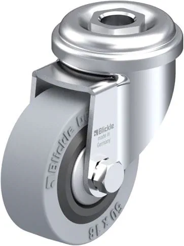 Apparatenzwenkwiel, met boutgat, wiel, met massief rubberen band, met kunststof velg, met naafbescherming van staal