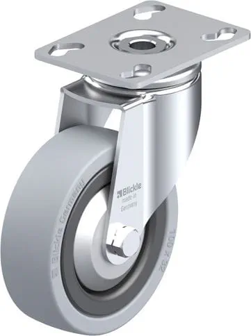 Apparatenzwenkwiel, met bevestigingsplaat, wiel, met massief rubberen band, met kunststof velg, met naafbescherming van staal