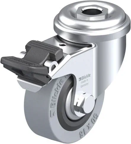 Apparatenzwenkwiel, met boutgat, met rem 'stop-fix', wiel, met massief rubberen band, met kunststof velg, met naafbescherming van staal