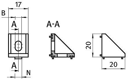 Montagehoek voor het ondersteunen van profielen en de montage van verschillende componenten.