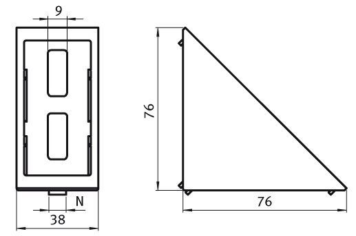 Montagehoek voor het ondersteunen van profielen en de montage van verschillende componenten.