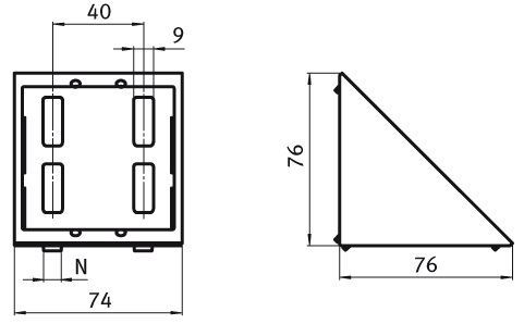 Montagehoek voor het ondersteunen van profielen en de montage van verschillende componenten.