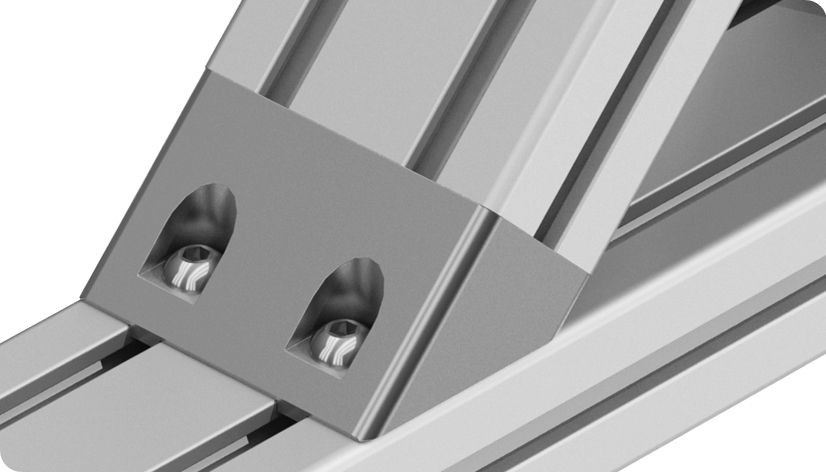 Montagehoek om 2 aluminium profielen in een 45 graden hoek met elkaar te verbinden.