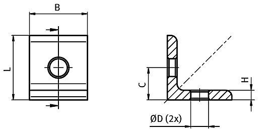Montagehoek voor de bevestiging van 40x40 profielen.