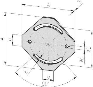 Plaat voor de bevestiging van profielen waarna verstelbaar onder verschillende hoeken.