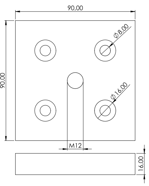 Basis en transport plaat voor profielen zonder centrisch kern gat.