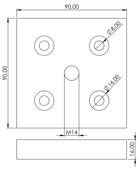 Voetplaat 90x90 M14 (standaard)