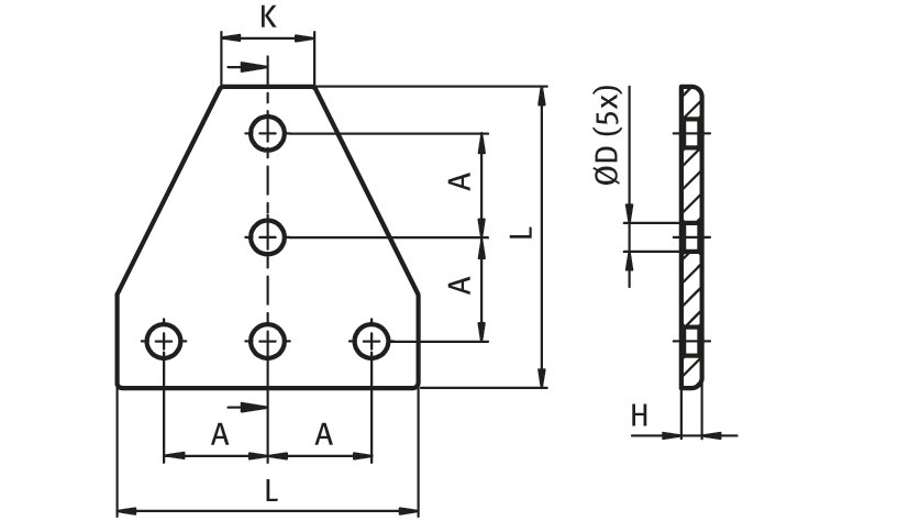 Koppelplaat geschikt voor het verbinden van een profiel aan een accessoires.