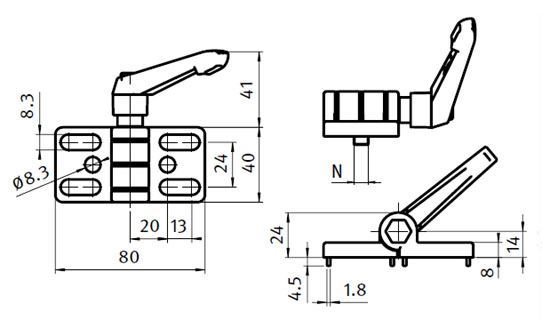 Scharnier voor hogere belastingen zoals deuren met profiel frames.Met vastzetter voor het vastzetten van het scharnier om draaing te stoppen.
