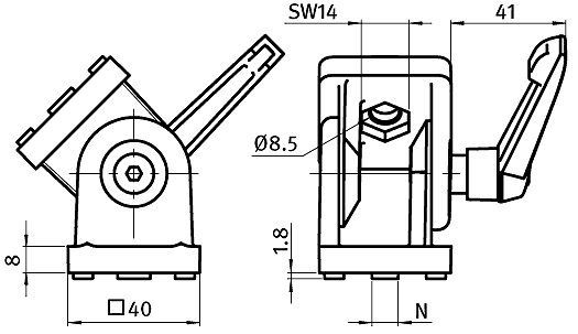 Gewricht voor het oneindig aanpassen en zwenken van profielen.Met spanhendel voor het vastzetten van het gewricht.