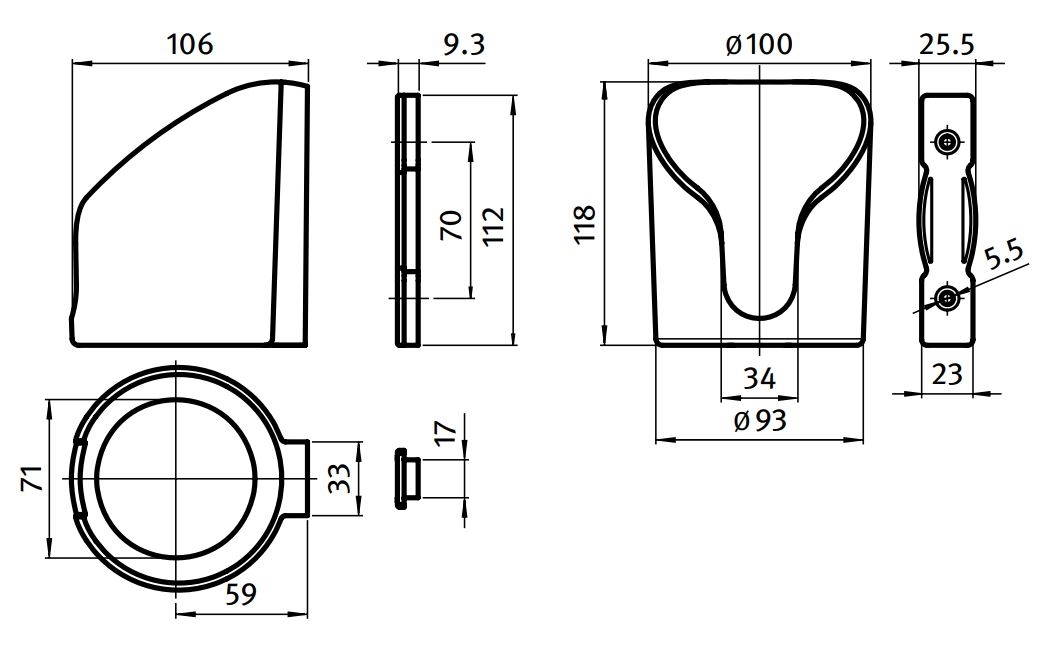 Bekerhouder geschikt om te gebruiken i.c.m. met het aluminium profielsysteem.