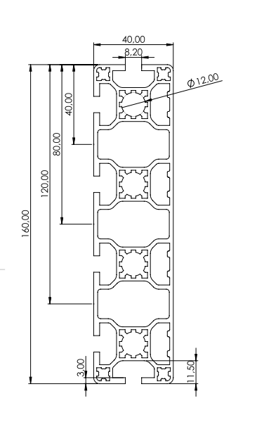 Ons 40×160 mm aluminium profielsysteem met 6 groeven (8,2 mm breed), waarvan één lange zijde gesloten is, biedt een unieke combinatie van montagevrijheid en esthetiek. De vijf open groeven zijn verdeeld over de overige zijden, wat zorgt voor veelzijdige montagemogelijkheden in modulaire constructies, machineframes en industriële toepassingen. De gesloten lange zijde biedt extra stevigheid en is ideaal voor toepassingen waarbij afwerking, reinigbaarheid of afscherming belangrijk is, zoals in cleanrooms, presentatiesystemen of transportstructuren.