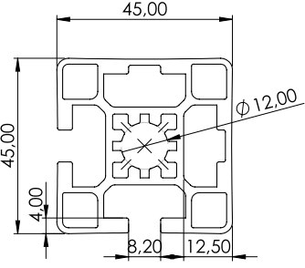 Ons 45×45 mm aluminium profielsysteem met 2 open groeven (8,2 mm breed) naast elkaar is een compacte en veelzijdige oplossing voor lichte constructies. De groeven bevinden zich op twee aangrenzende zijden van het profiel, terwijl de overige zijden gesloten zijn. Dit maakt het profiel geschikt voor hoekverbindingen en toepassingen waarbij een combinatie van functionaliteit en esthetiek gewenst is.