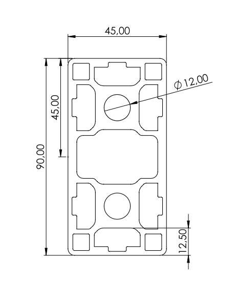 Ons 45×90 mm aluminium profielsysteem is een volledig gesloten profiel zonder open groeven. Alle zijden zijn dicht, wat dit profiel bijzonder geschikt maakt voor toepassingen waarbij een glad en strak uiterlijk gewenst is, zoals afschermingen, designconstructies of situaties waarin vuilophoping in groeven vermeden moet worden.