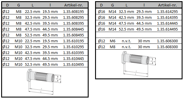 Voor het kiezen van de juiste inslagmoeren kunt u deze tabel gebruiken.
