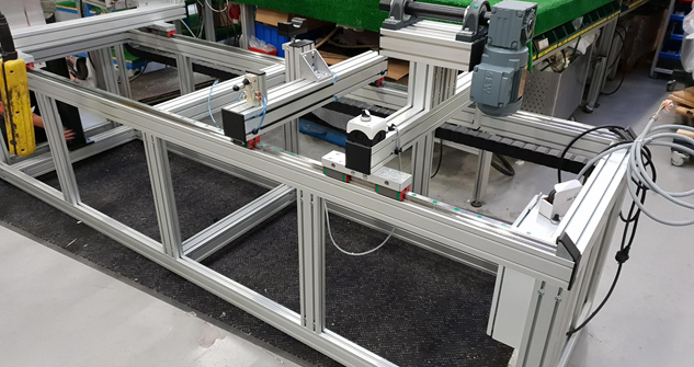 Dankzij het aluminium profielsysteem van Inducomp kon er snel en flexibel gewerkt worden. De profielen zijn op diverse manieren te koppelen, eenvoudig te demonteren en opnieuw te monteren — ideaal voor het testen en aanpassen van een prototype. Lineaire geleidingen werden direct op de profielen bevestigd, en ook motoren en aandrijfcomponenten konden moeiteloos aan de groeven worden gemonteerd.